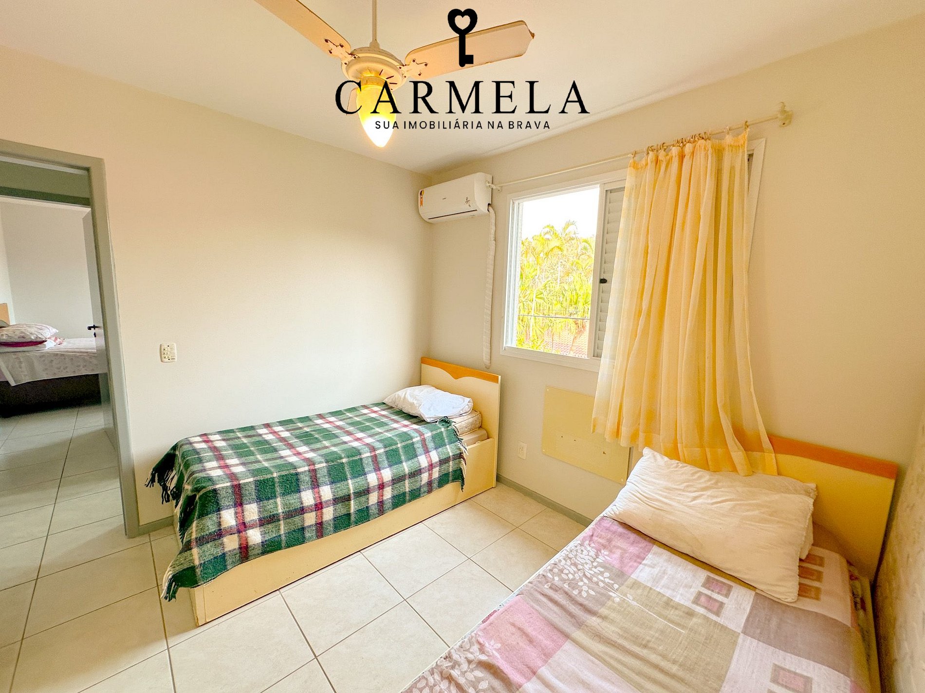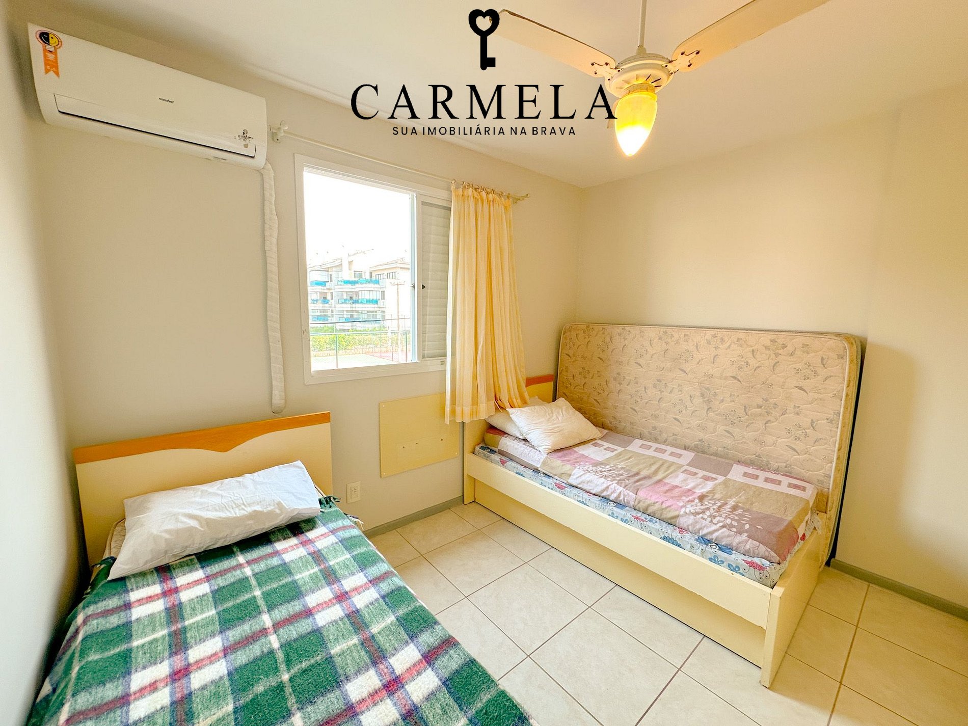 2º dormitório com 1 cama de solteiro e 1 bicama e ar condicionado.