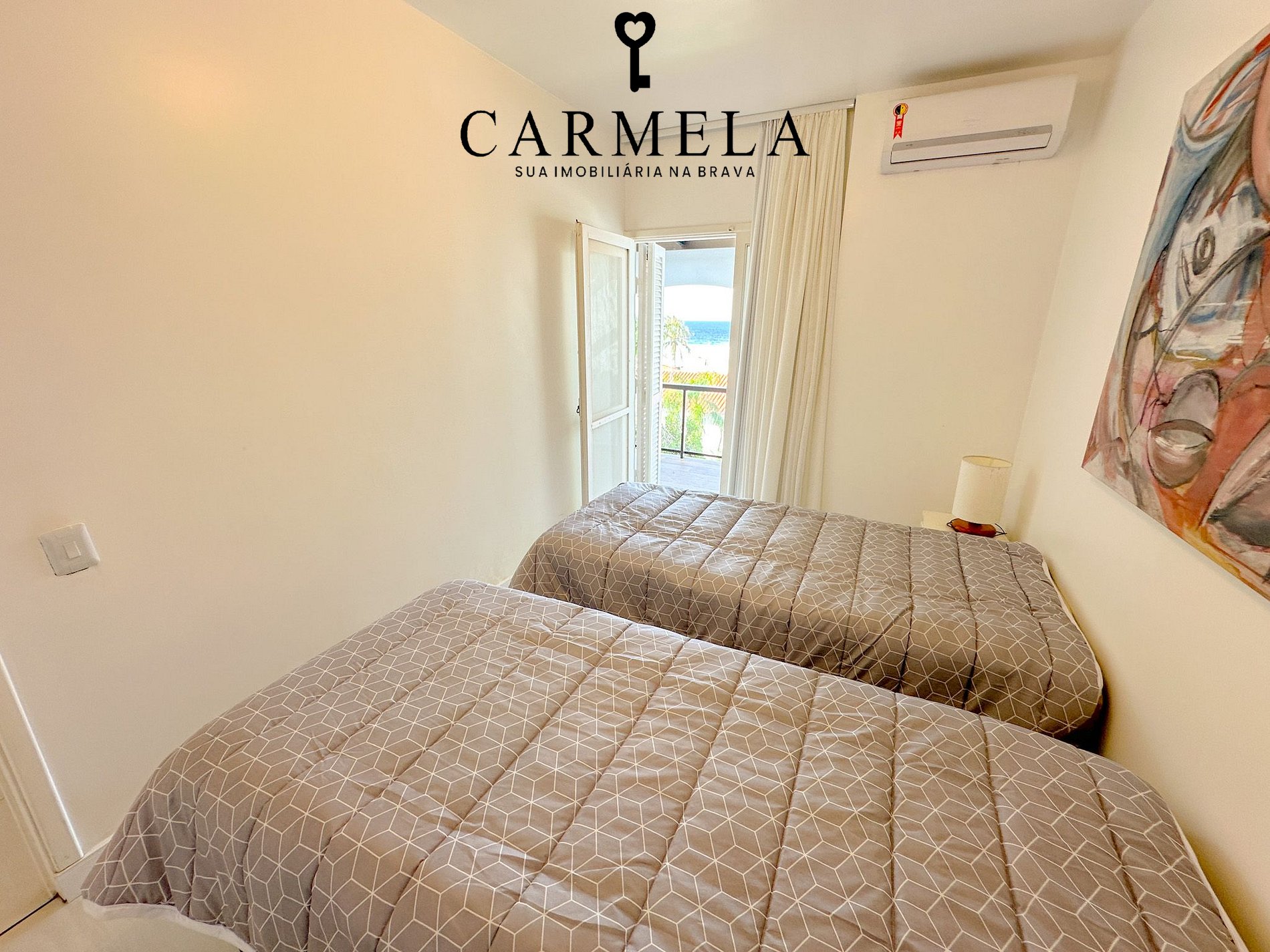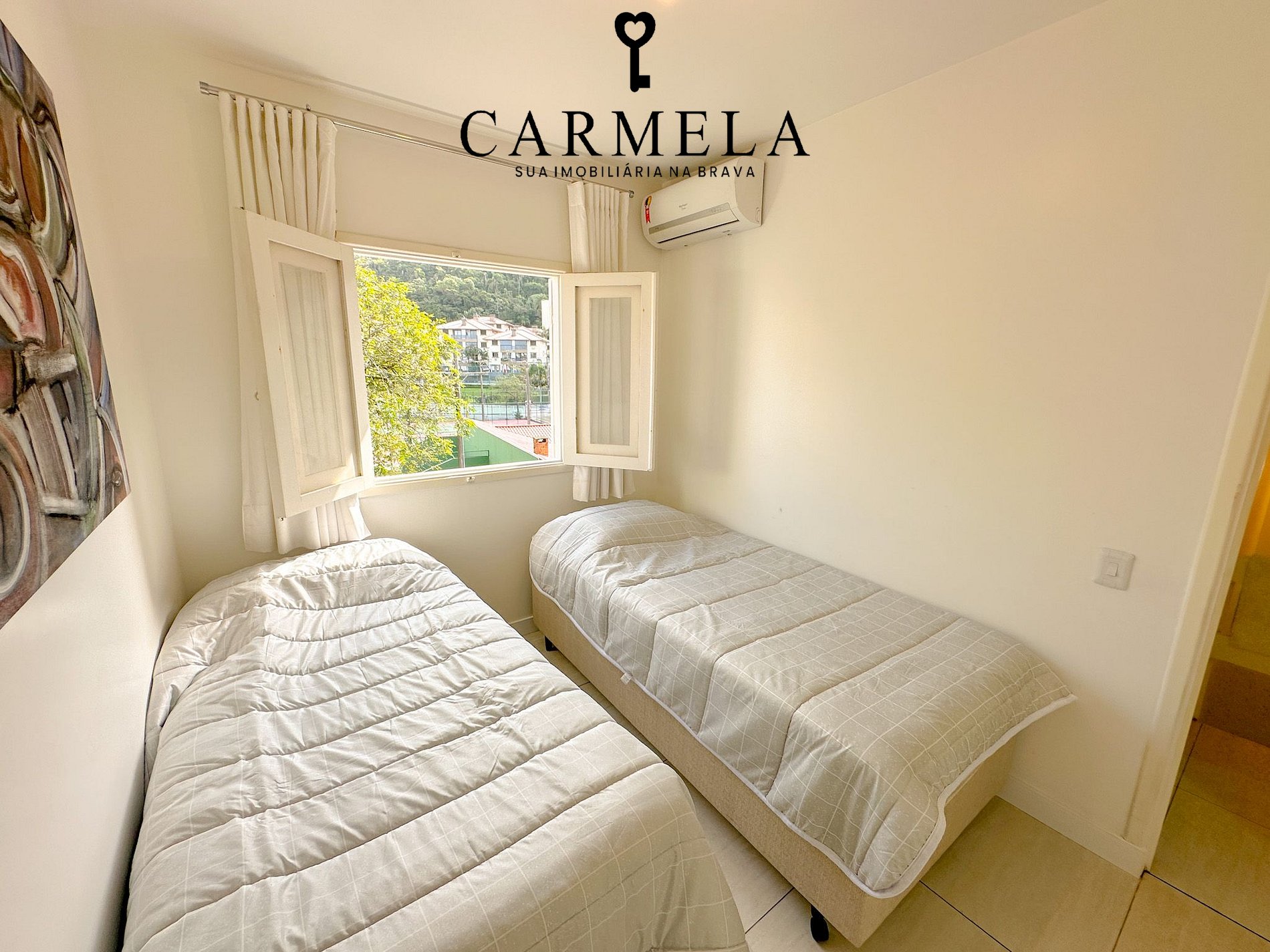 2 Dormitórios com duas camas de solteiro e ar condicionado.