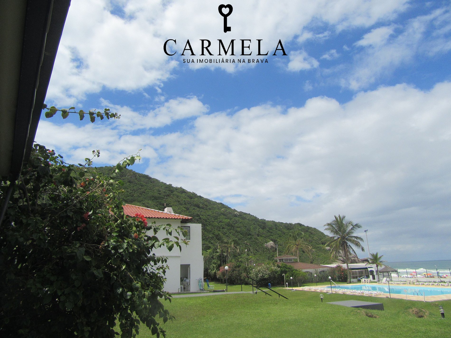 Vista para a praia e piscina.