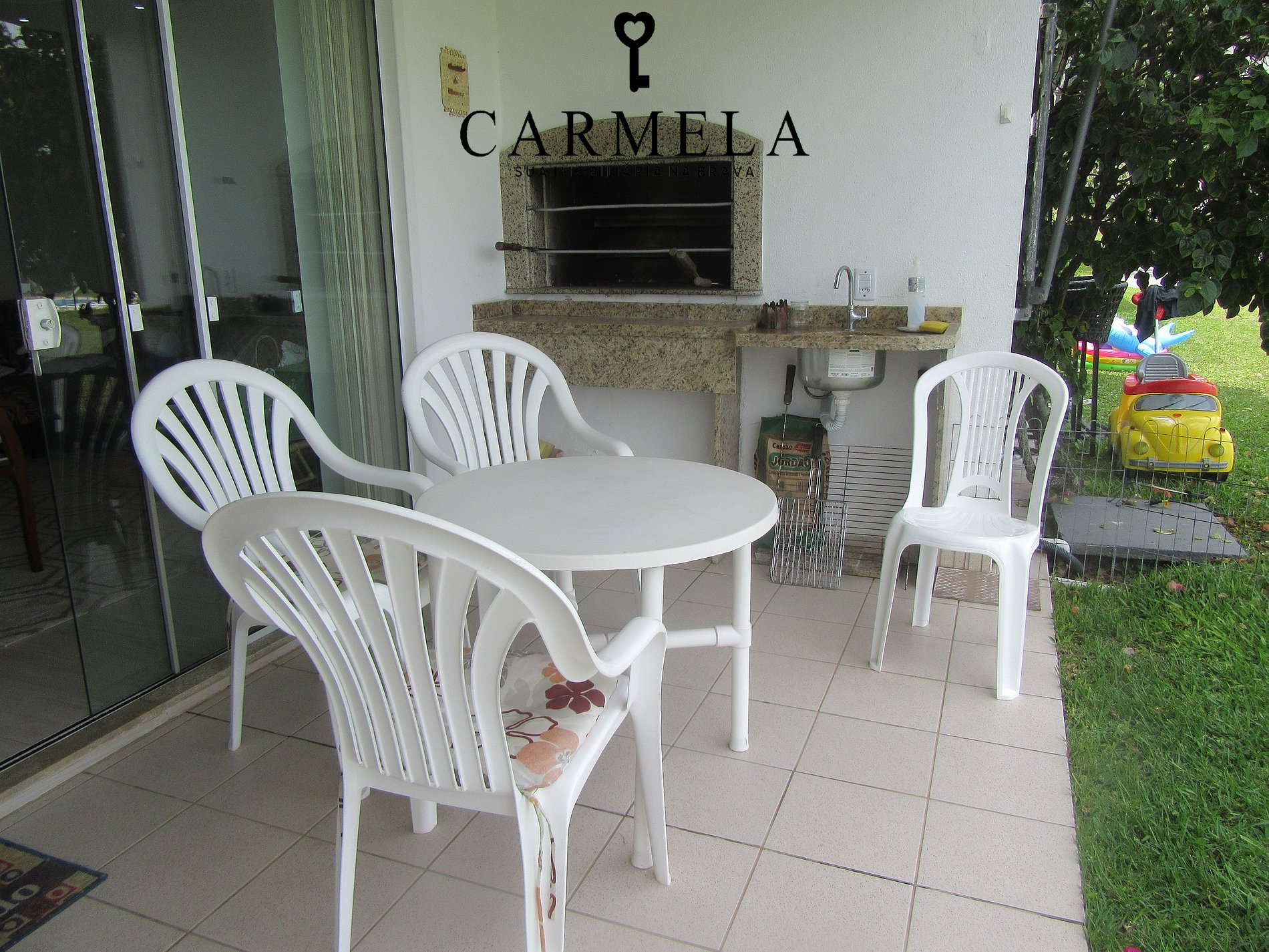 Varanda com churrasqueira.