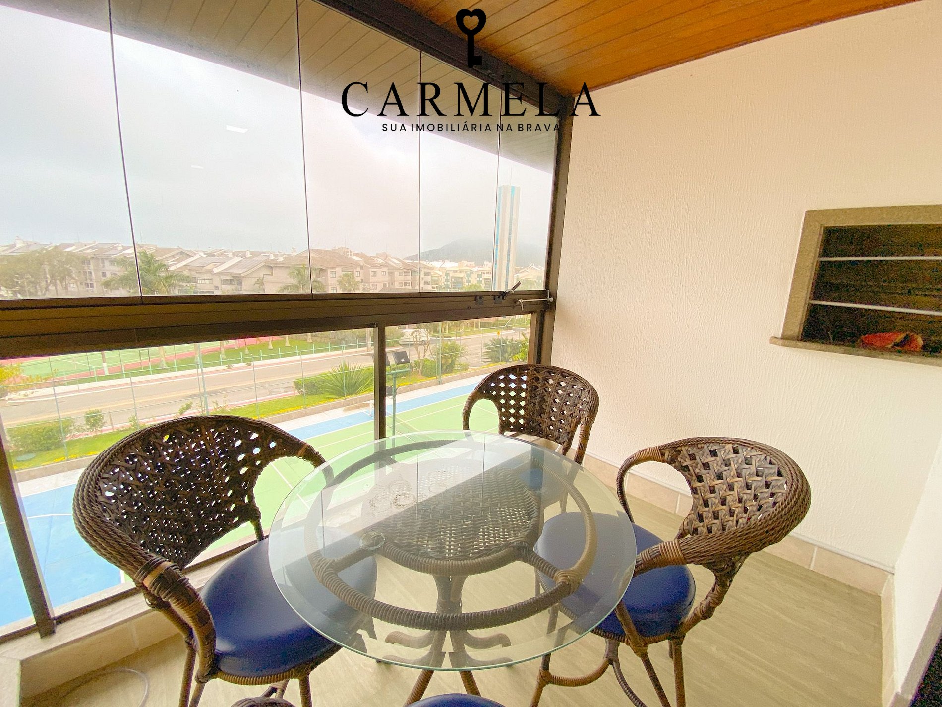 Sacada fechada com churrasqueira.