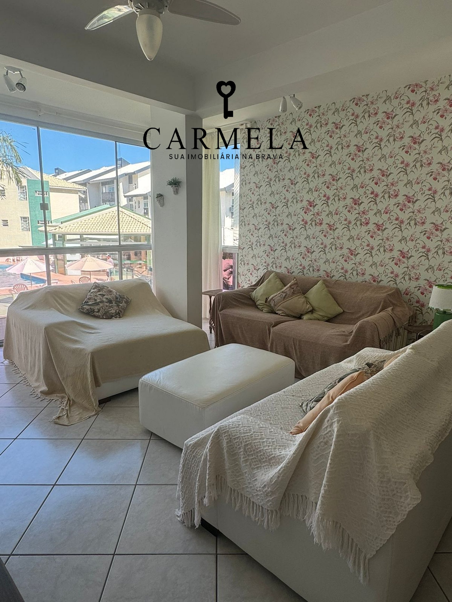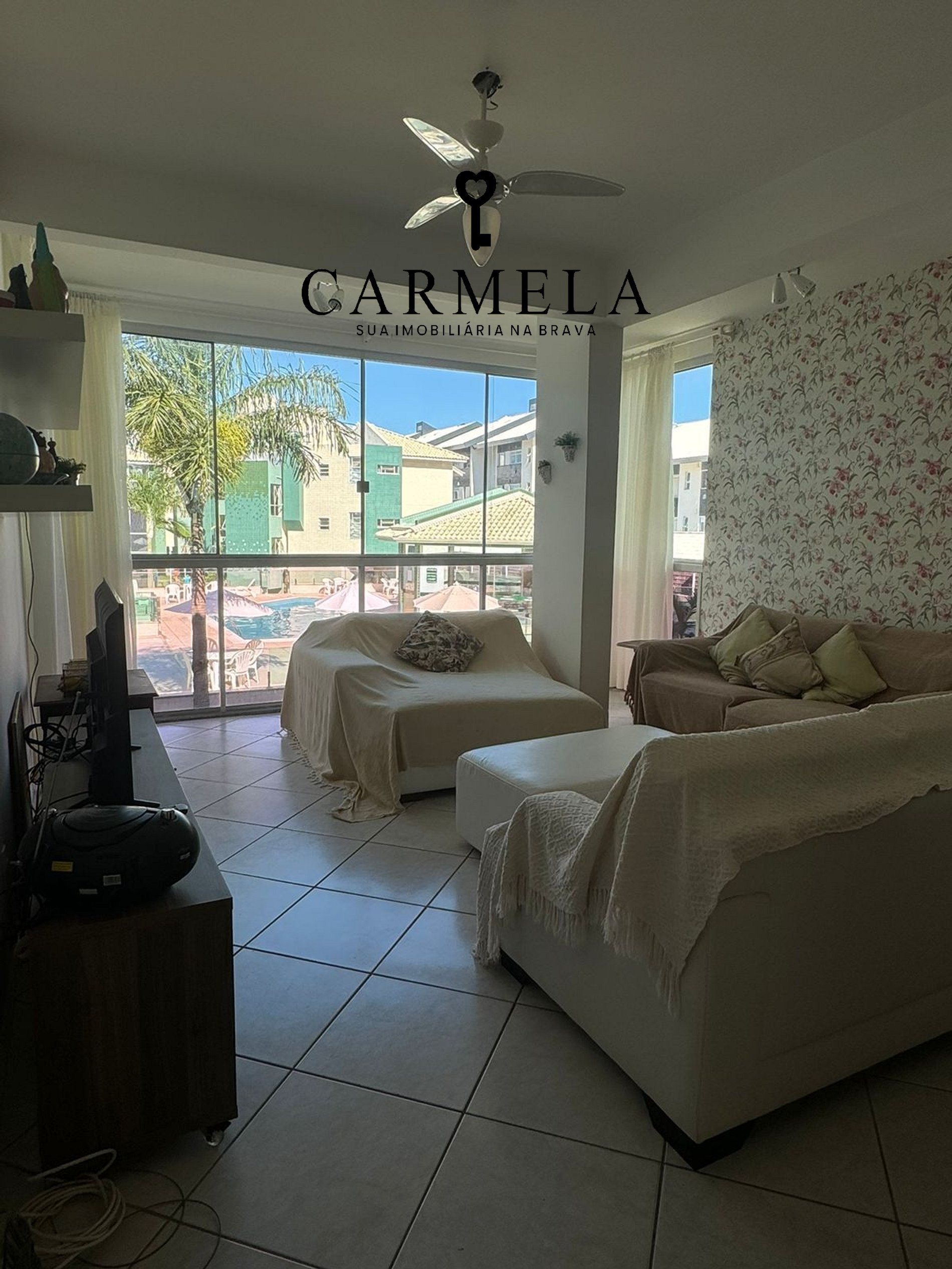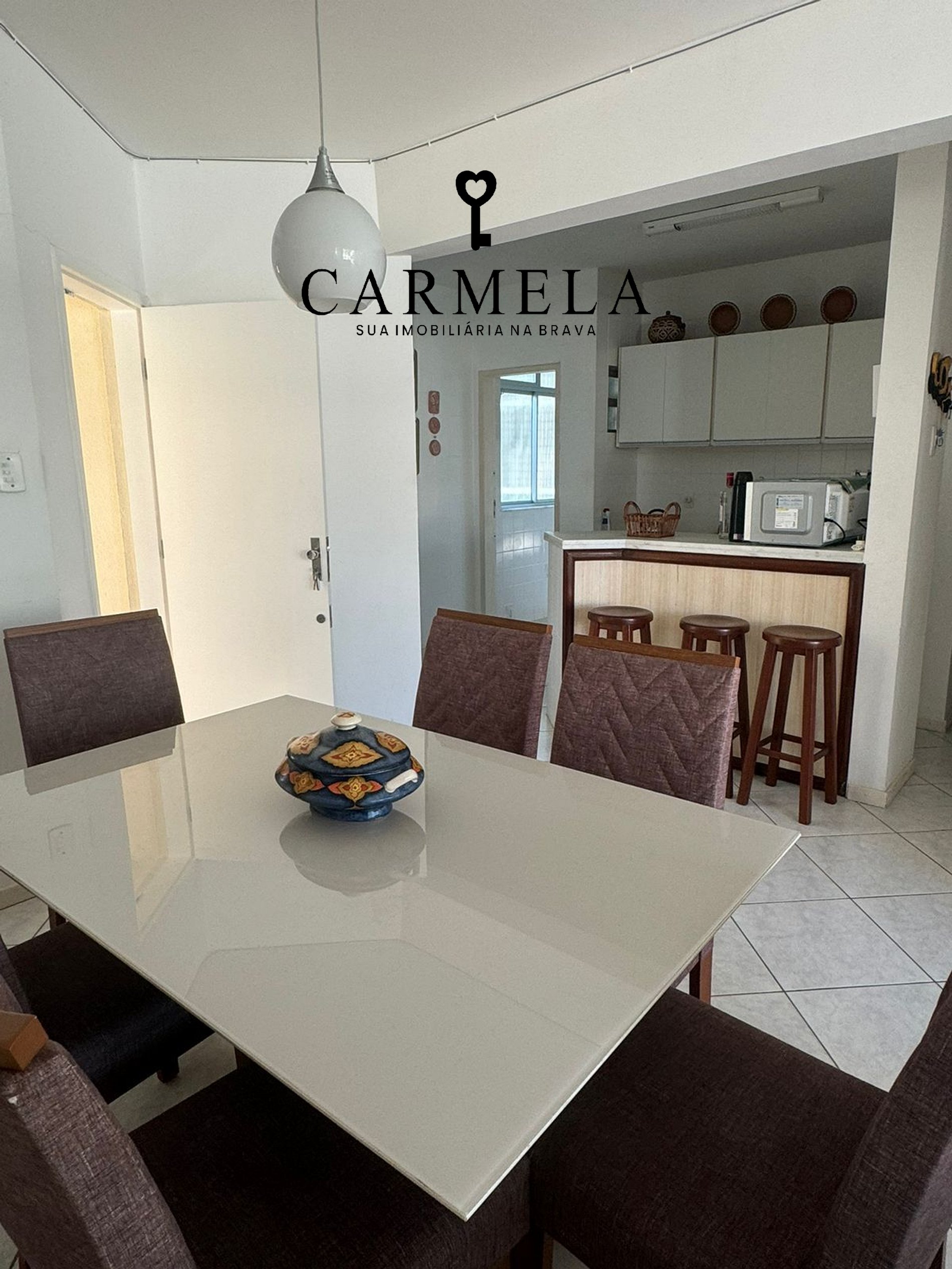 Condomínio com piscina, na quadra da praia.