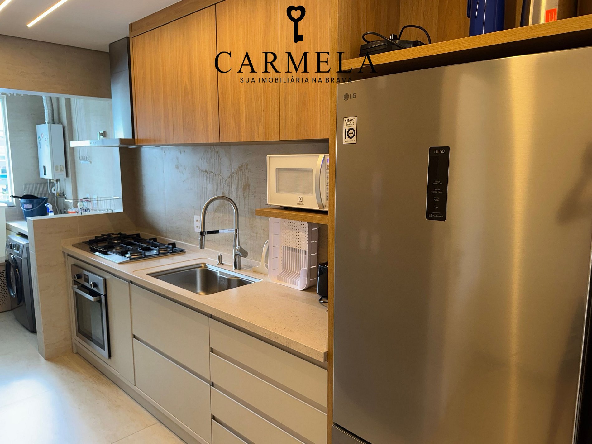 Mobiliado e equipado. Wi-Fi, televisão, geladeira duplex, micro-ondas, fogão e máquina de lavar roupas.