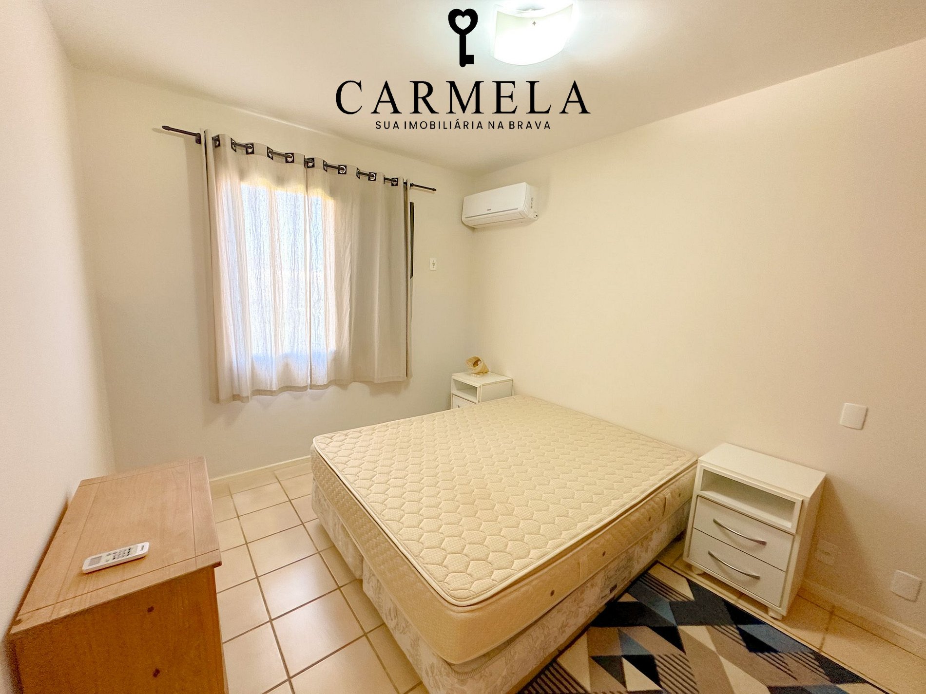 Dormitório de casal com 1 cama box king e ar condicionado.