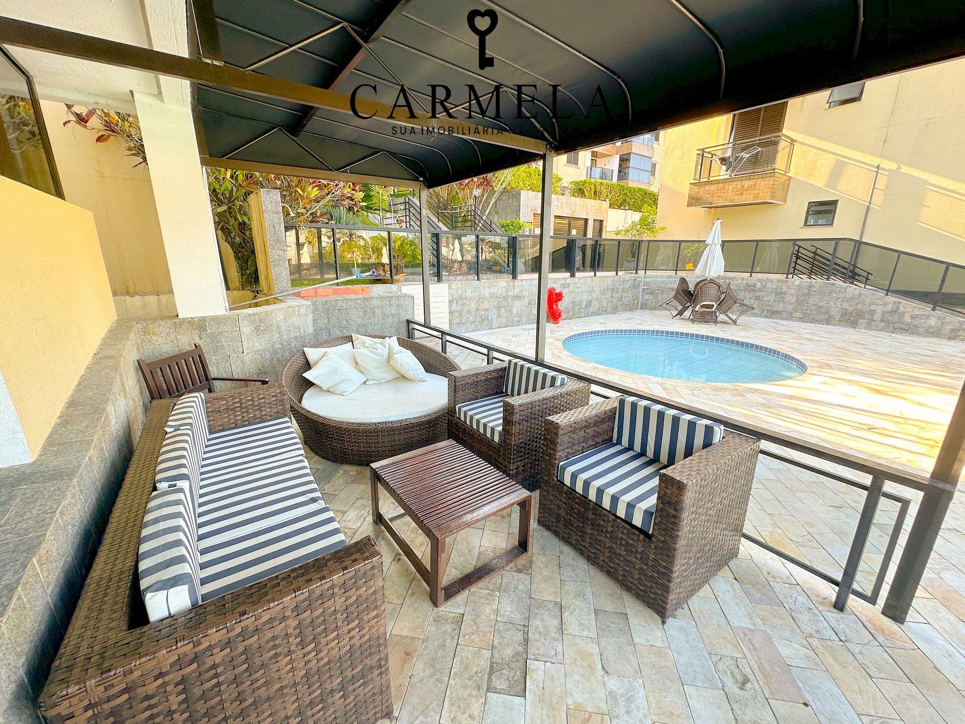 Condomínio com piscina e quadra poliesportiva. 1 quadra da praia.