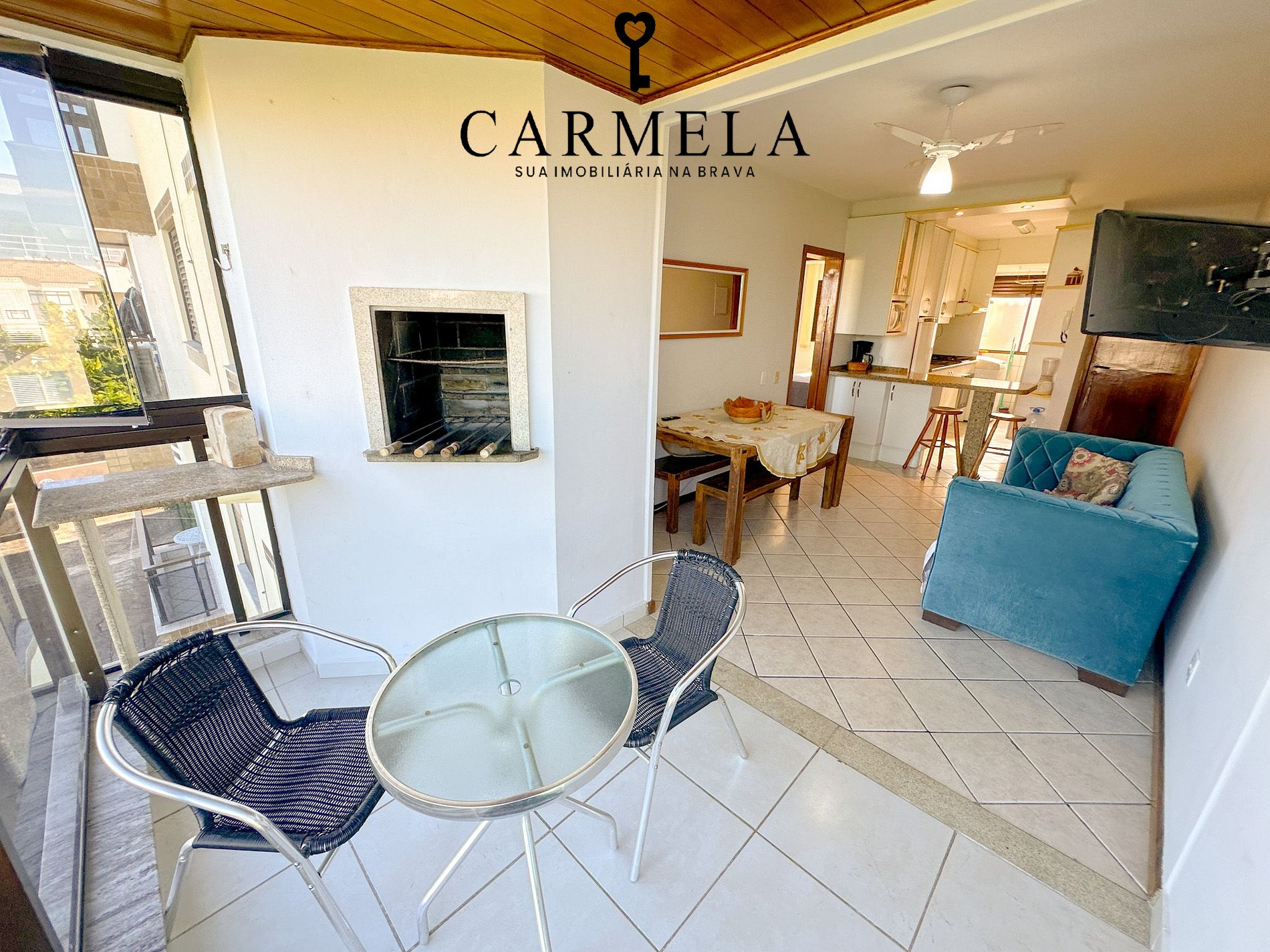 Sacada fechada com churrasqueira.